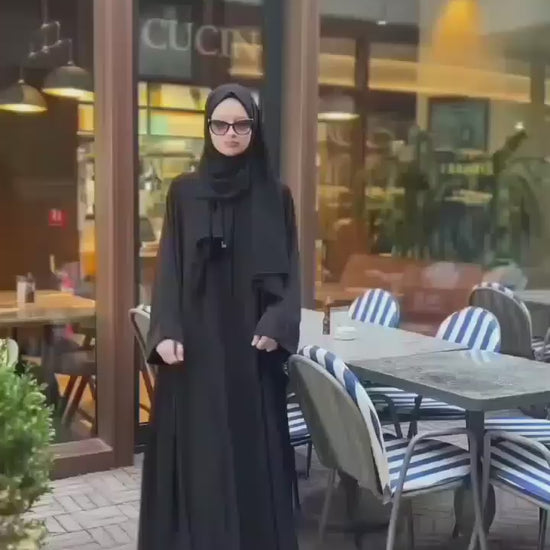 Grace and elegance in every detail. This timeless black abaya is crafted from premium georgette for a lightweight, flowing drape. Perfect for everyday wear or special occasions.