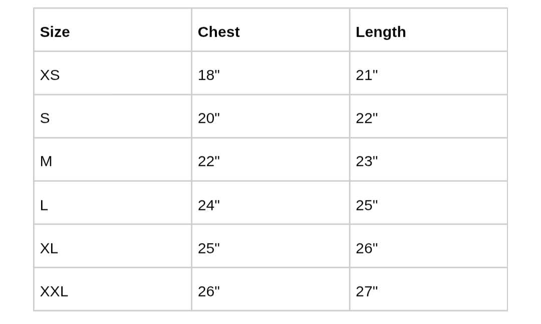 XL: Chest 25" | Length 26"