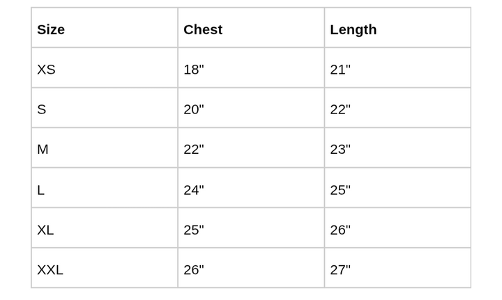 XS: Chest 18" | Length 21"