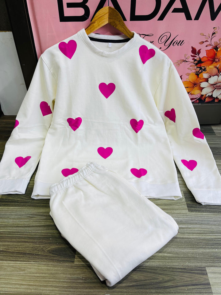 Wrap yourself in warmth and love with our Soft Fleece 2PC Suit, featuring adorable heart prints for that cute and cozy vibe! Perfect for lounging at home or casual everyday wear. 🩷