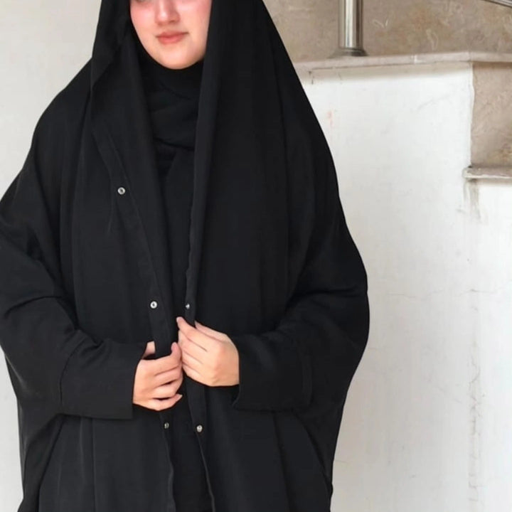 - Design: Elegant front-open Chadar Abaya